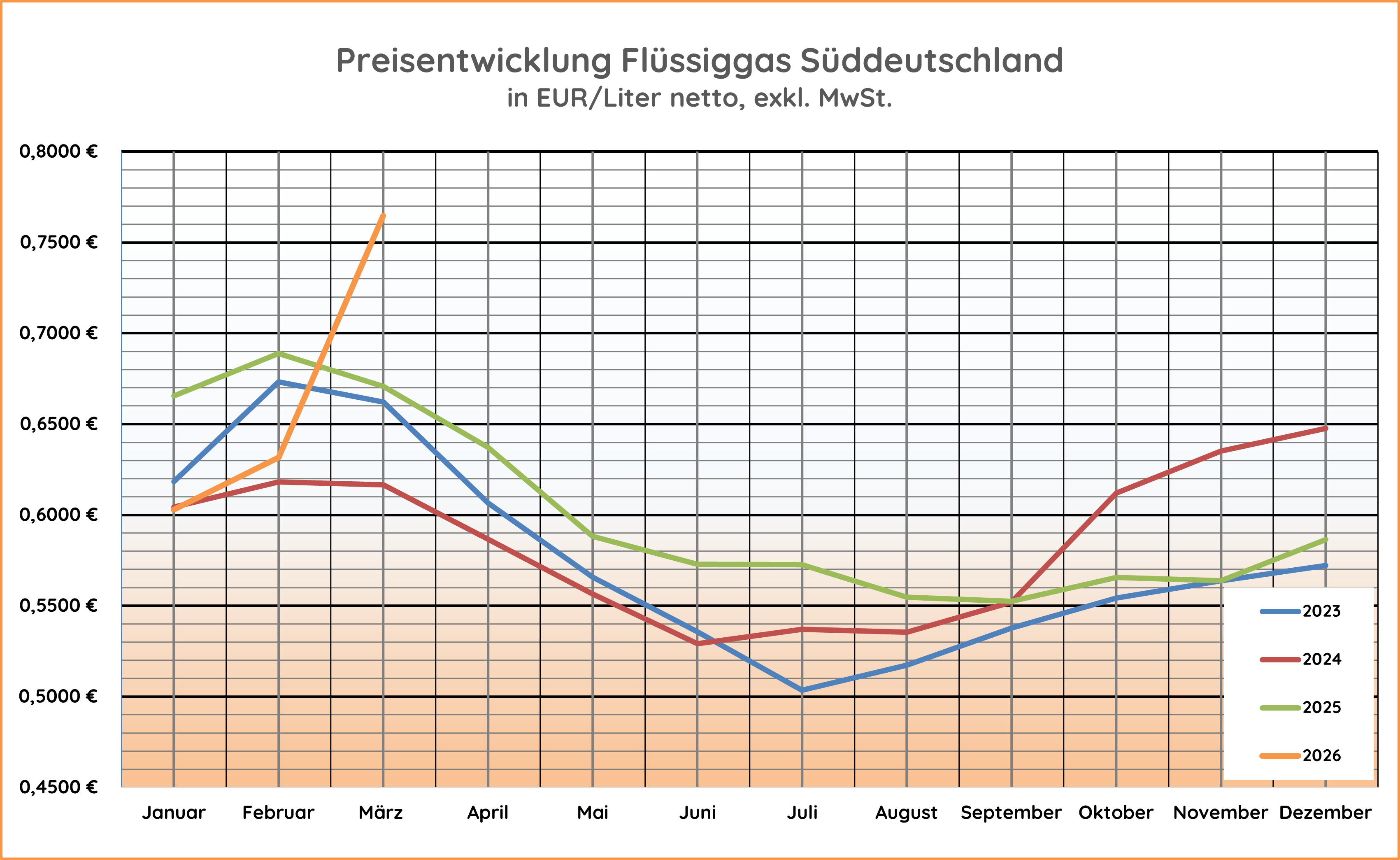Preisentwicklung von Flüssiggas in Süddeutschland